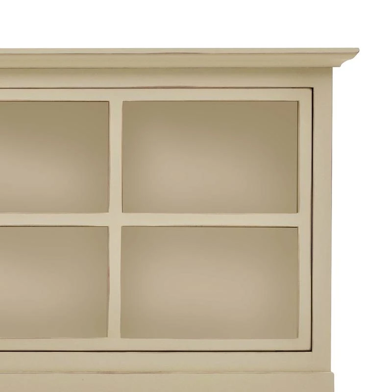 - 2 portes coulissantes, chacune avec 1 tablette en bois