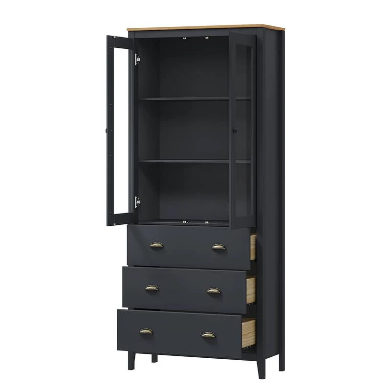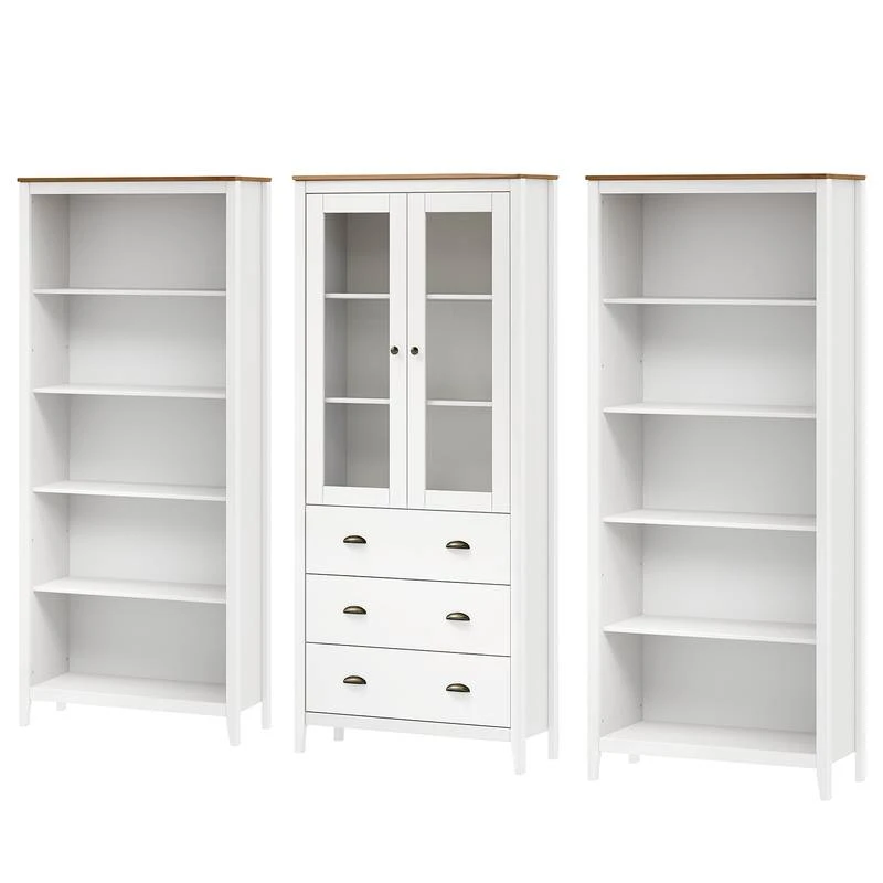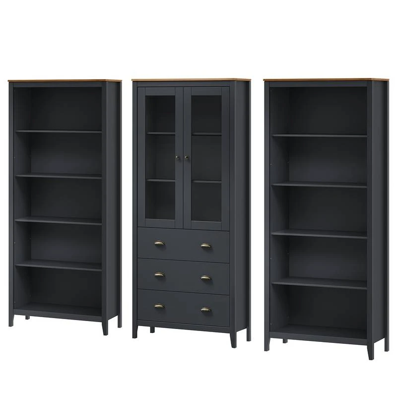- Contenu de la livraison : Ensemble comprenant 2 étagères et 1 vitrine, sans décoration