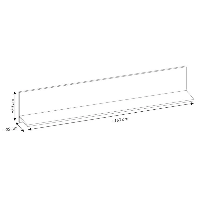 - Tablette murale : 160 x 30 x 22 cm