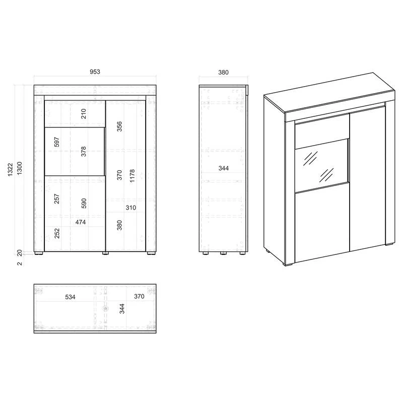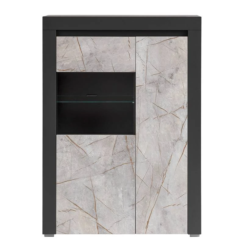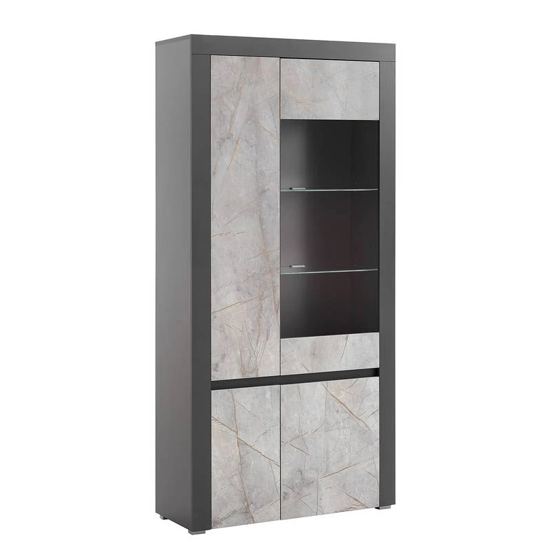 - Contenu de la livraison : Ensemble comprenant 1 vitrine, 1 tablette murale, 1 meuble TV et 1 buffet haut, sans éclairage ni accessoires