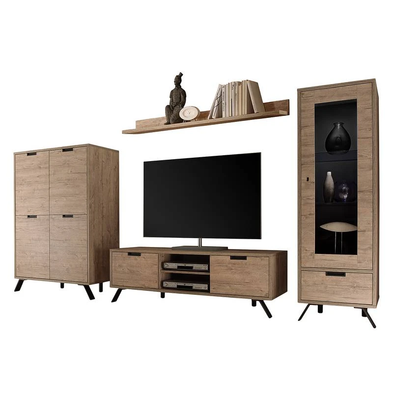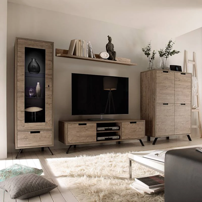 - Meuble TV : 2 compartiments pour appareils électroniques et 2 tiroirs