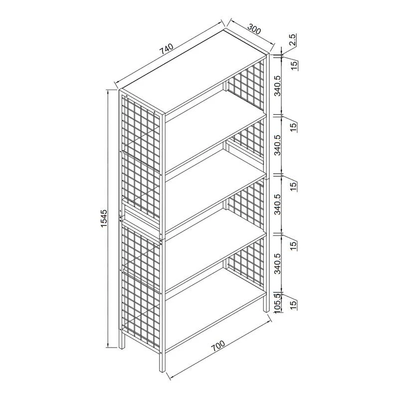 - Étagères et panneau arrière : panneau aggloméré enduit