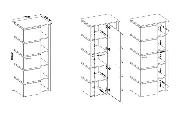 1 x Hochvitrine : B76,7 x T33,6 x H190 cm