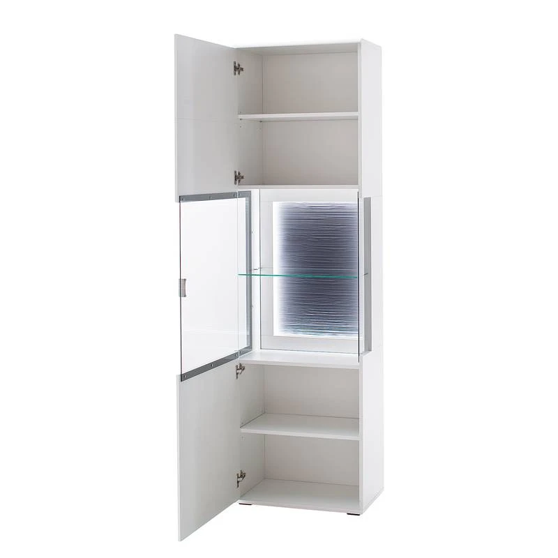 - Contenu de la livraison : Ensemble comprenant 1 vitrine, 1 tablette murale, 1 meuble TV et 1 buffet haut, sans éclairage ni accessoires